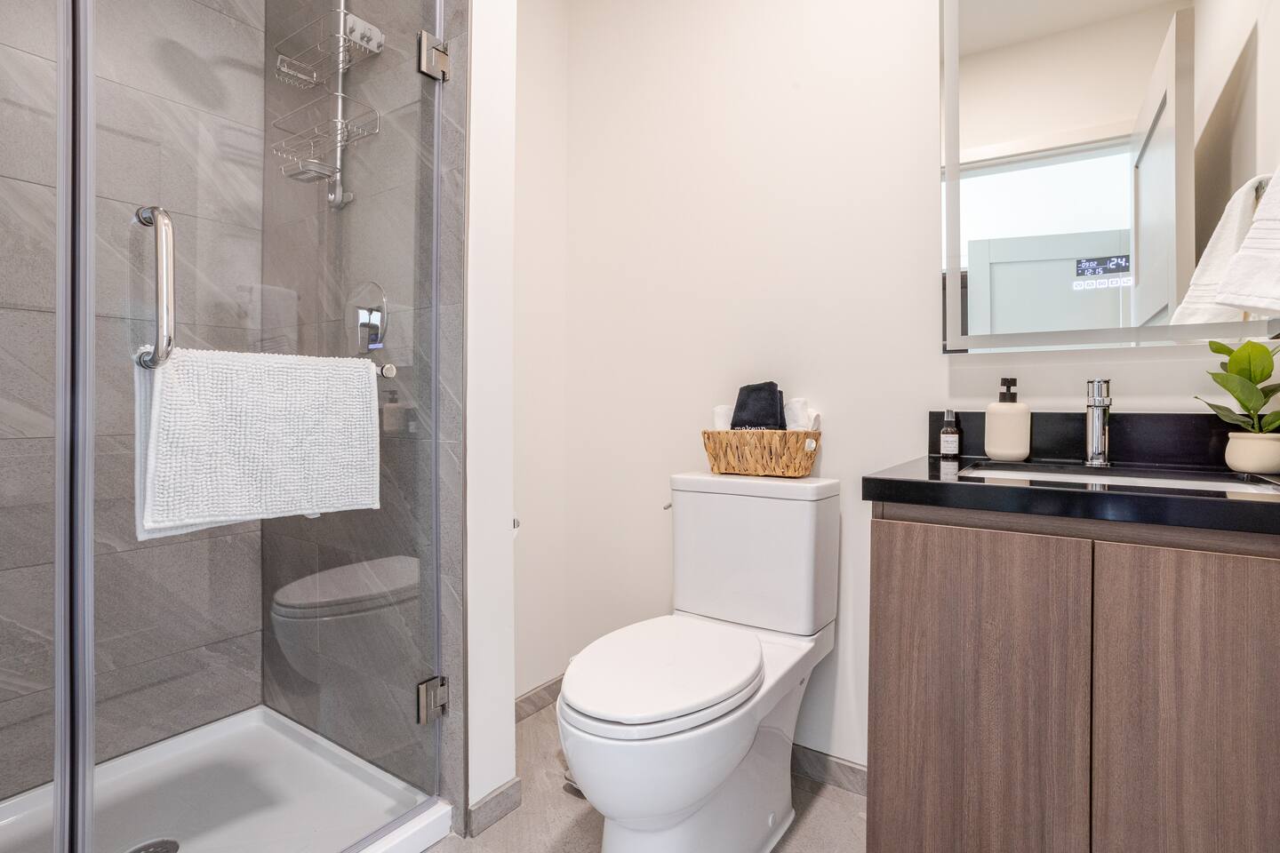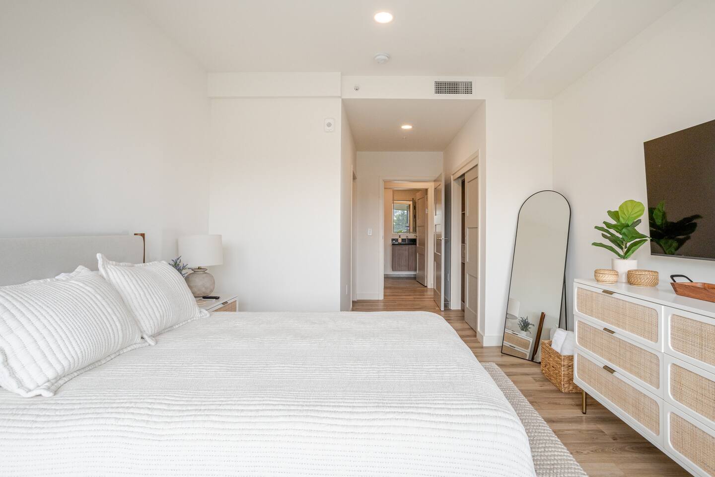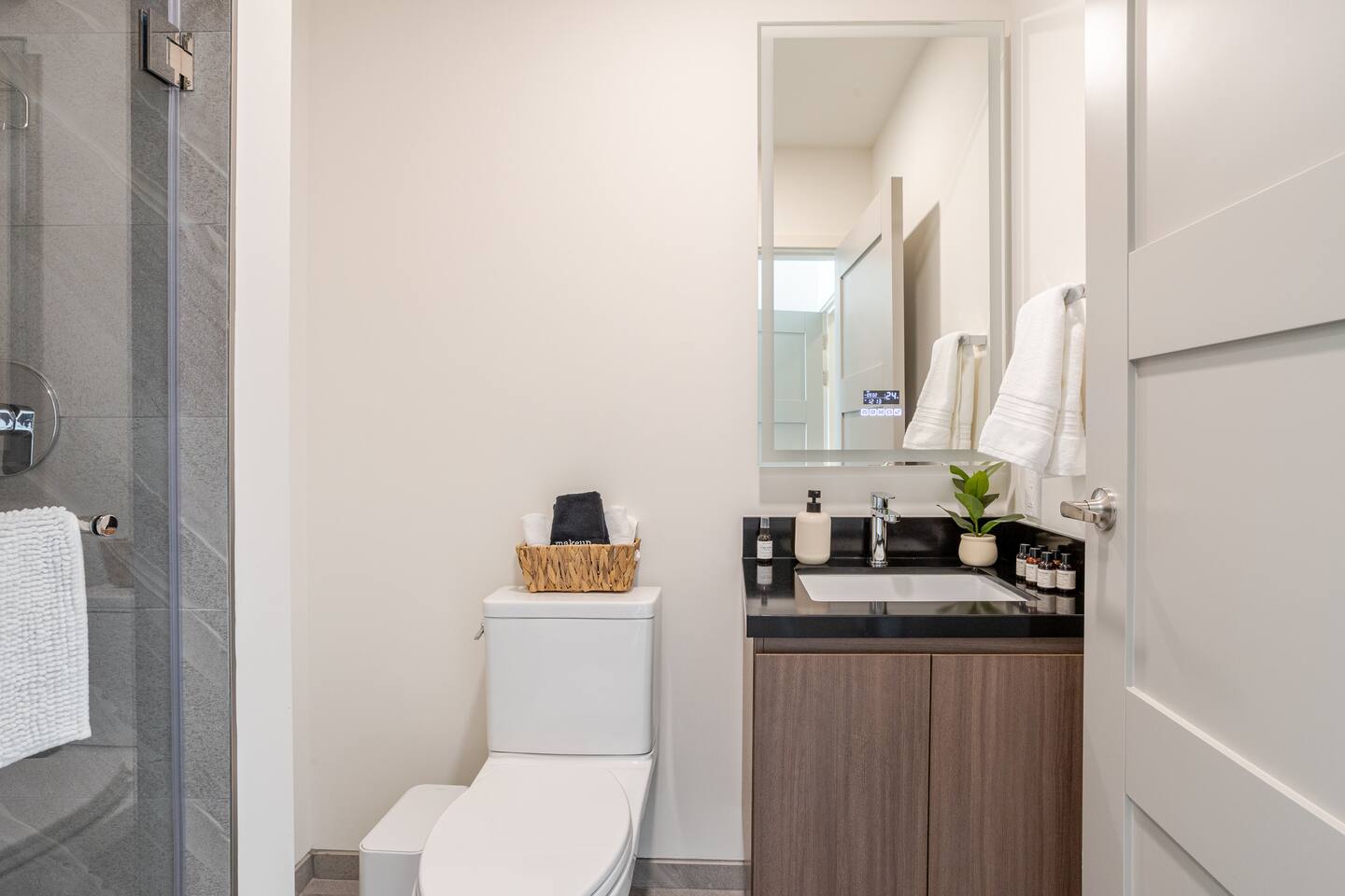 Experience comfort, convenience, and thoughtful design in this spacious third-floor condo with elevator access — the perfect base for exploring Bellingham and beyond. • 1,500 sq. ft. condo on the 3rd floor, with elevator access • Two bedrooms: one with a king bed, one with a queen bed • Two full bathrooms with walk-in showers, plus a half bath • Accommodates up to four guests comfortably • City skyline views, peekaboo water views, and sightline to Western Washington University • Private covered balcony for relaxing outdoors • Fast 1 GB Wi-Fi with Wi-Fi 6 for remote work or streaming • Three Smart TVs — in the living room and both bedrooms • Fully equipped kitchen with stainless steel appliances and cookware • In-unit washer and dryer for convenience • Central air conditioning and heating • One reserved parking space in a secure underground garage • Located steps from downtown Bellingham’s restaurants, shops, breweries, farmers market, and waterfront trails • Just 90 minutes from Mt. Baker Ski Area — perfect for skiing, snowboarding, or summer alpine hikes Please note: The nearby railway line has frequent commercial and passenger trains. Horns can be loud and occur at all hours. We provide earplugs and white noise machines in each bedroom to ensure your comfort.