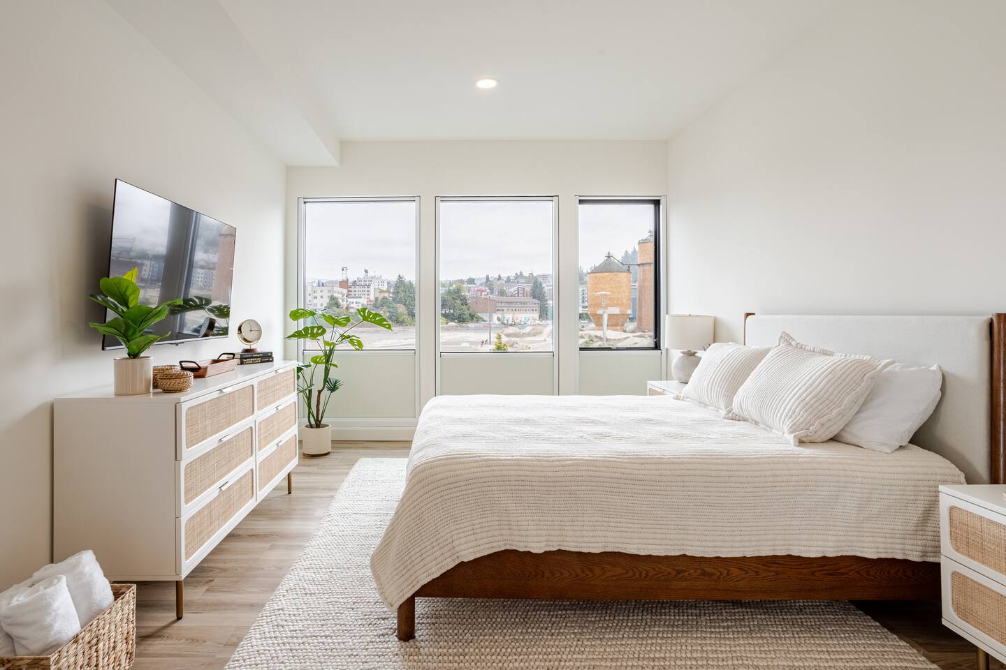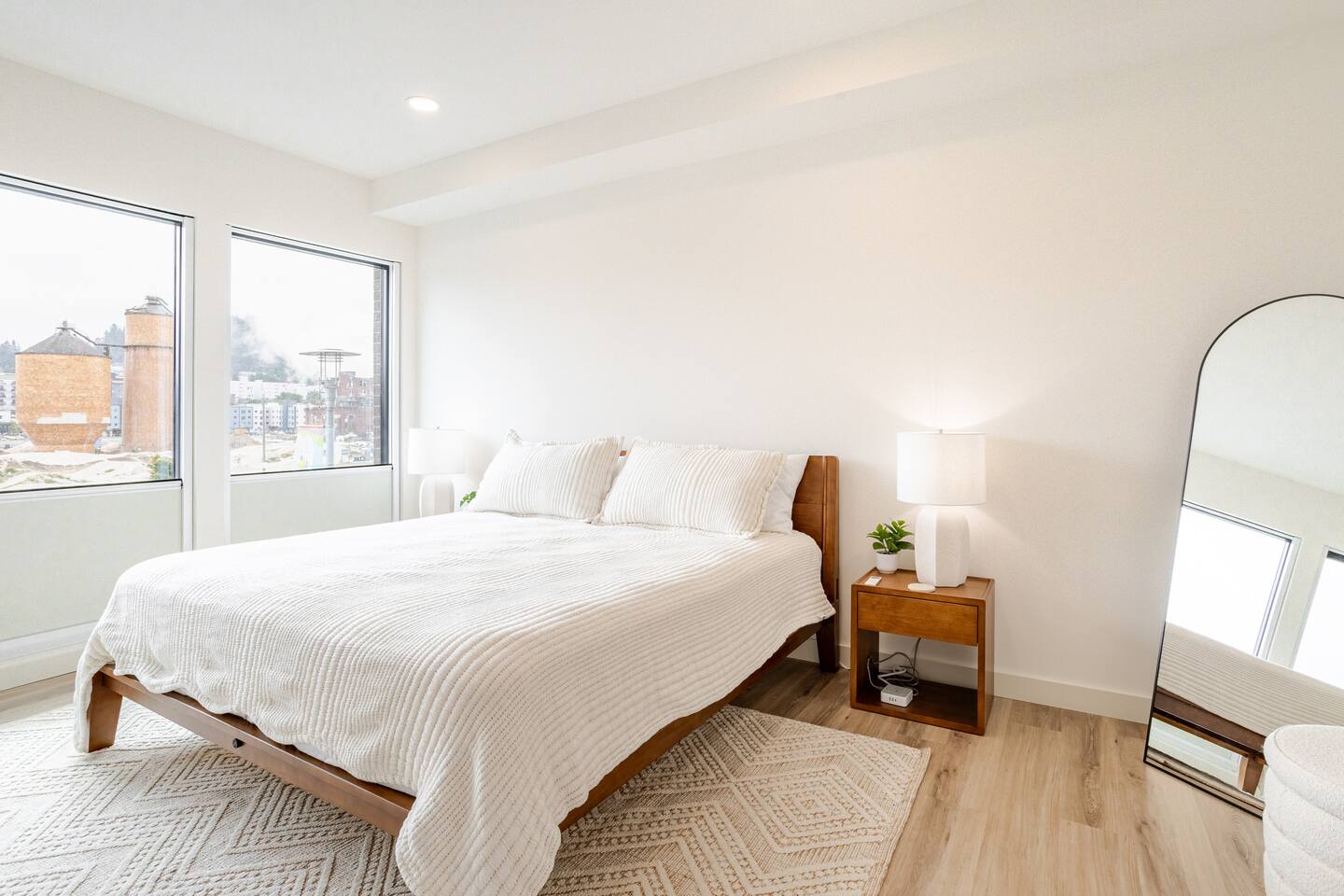 Bellingham STR Permit #USE2025-0017 Be one of the first to stay in this modern 2BR/2.5BA condo in Bellingham’s Waterfront District! Close to WWU, and walking distance to downtown restaurants, breweries, shops, and the waterfront trail. Features include city views, peekaboo water views, 1GB Internet (Wi-Fi 6), smart TVs, full kitchen, A/C, and garage parking.